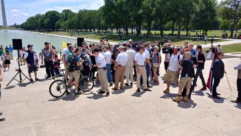 On the 25th of June, the so-called "Proud boys," Richard Spencer, and Identity Evropa held a "free speech" protest on the Mall peddling a narrative that anti-fascists (antifa) oppose free speech. Rejecting the bait, anti-fascists descended instead on MPD's headquarters to condemn police violations of free speech rights such as the efforts to imprison Inauguration protesters for up to 80 years. A second counterprotest held the high ground over the fascists on the Lincoln Memorial steps, and a second fascist rally took place at the White House
