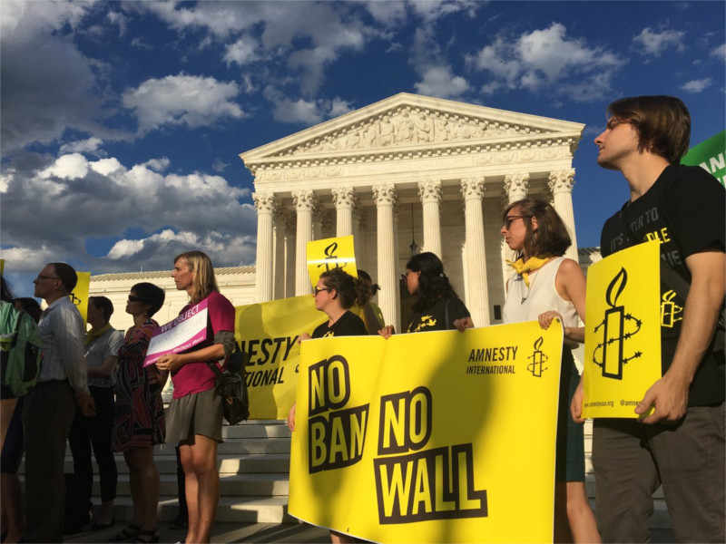 On the 26th of June, the US Supreme Court let much of Trump's ban on Muslim travellers from six countries go into effect for 90 days. Those who could prove a connection to a US citizen or organizations were exempted. Several hours later, protesters assembled outside the Supreme Court, and attorneys were reported to be on their way to airports again.