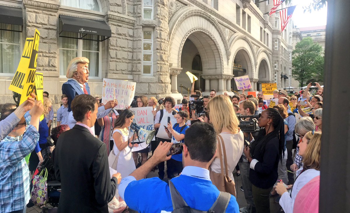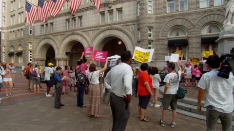 On the 28th of June, Donald Trump held a fundraiser for himself at Trump Hotel, drawing protesters on very short notice. Protesters invoked everything from Russiagate to Trump's war on women and the environmental record of his EPA chief Pruitt. Inside, dinner was $35,000 a plate, some paid as much as $110,000, and ABC News reported Trump raked in $10M from his very wealthy donors.