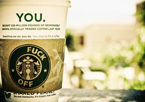 Remember Starbucks, the corporation that got their restaurants trashed by black blocs from Seattle/WTO 1999 through the G20 protests in Quebec 2010? Well,Starbucks exploits workers in 2014 like they did in 1999, and former employee Sam Dukore caught CEO Howard Schultz at a DC event where Starbucks was promoting online classes.