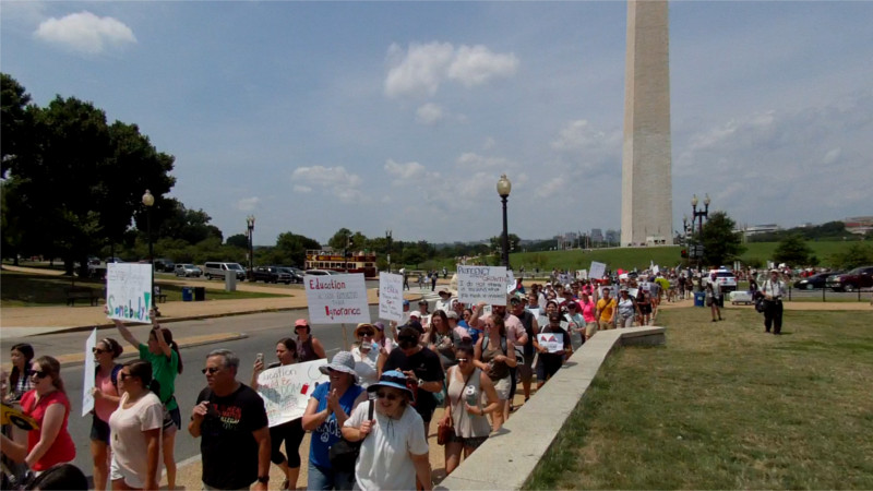 It's been six months since the violent police attacks on protesters at Trump's inauguration, and opposition to the Trump agenda is still turning people out in the streets. On the 22nd of January, a large march took over Independence Ave to oppose the corporate takeover of education advocated by Trump and his transphobic Secretary of Education Betsy Devos. Devos is a radical privatization advocate whose sole qualification for office is giving millions to Trump's campaign fund.