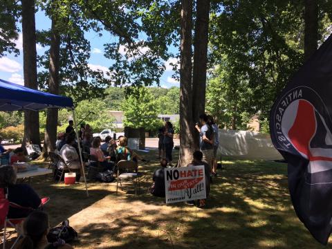 On the 29th of July, the neo-Nazi American Renaissance Conference met at Montgomery Bell State Park in Tenessee. They have been there since they were driven from Dulles and the DC area by anti-Fascist protesters. This time around, fleeing to Tenessee did not protect them. Anti-Facists protested the event, and frustrated alt-right Nazis responsed with scattered violence. A DC activist was nearly run down by a carload of Nazis, and one AMREN attendee had to go to the hospital by helicopter after he didn't do well in the fight he chose to start.