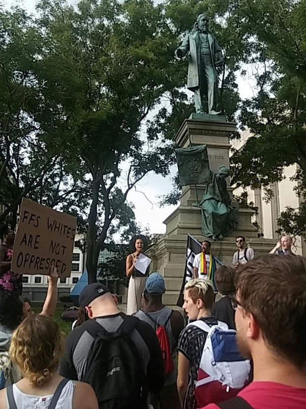 On the 18th of August, unknown activists hung a "modern Confederates" banner from the Albert Pike statue by MPD(police) headquarters. Later in the day, red paint was thrown on it during a protest demanding its removal.