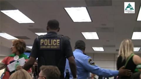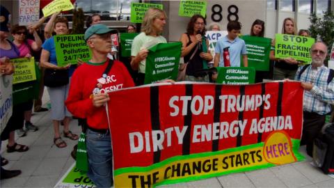 On the 20th of September, the Federal Energy Regulatory Commission (FERC) held its first meeting since two of Trump's three new commissioners were confirmed. Protesters showed up outside, and those of them not yet known to FERC security managed to attend the "open" meeting. FERC security is known for using "blue dots" added to badges issued by security to mark known activists to be excluded from so-called "open" meetings.Once inside, they sang "We shall overcome" and were ejected.