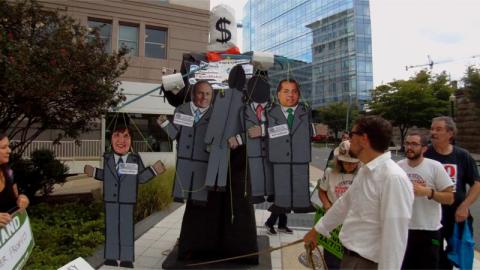 FERC is infamous as the gas and pipeline industry's rubber stamp for eminent domain, and some of the protesters from front-line communities singled out this theft of their land in calling out the agency. On the climate change issue, Reverend Yearwood mentioned the hurricanes devastating Puerto Rico and the Gulf Coast this year, telling FERC to "check the weather" to understand why approving further fossil fuel infrastructure was a bad idea.