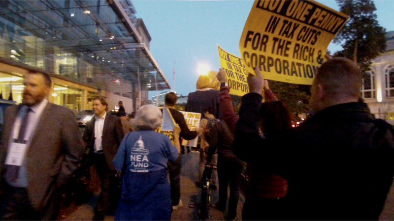 Protesters emphasized that Trump's tax cut for the upper class and corporations would be paid for in part by big cuts to Medicaid and Medicare, which he is trying to gut. WTOP News reported earlier in the day that tax increases on the middle class would also result from the proposed tax "reform" and budget, yet it still would not be "revenue neutral."
