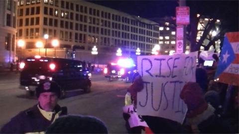 The march intended to terminate at the National Press Club so particpants could attend the “State of OUR Union” w/ @NWBlackWomen, which was one of a huge number of alternative events held to counter-program against the State of the Union. Unfortunately, police blocked the doors of the National Press Club, and security never did agree to order police to let the marchers attend. They cited "prior incidents" from when the National Press Club hosted fascist groups as the reason.