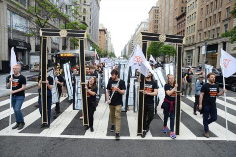 The 14th of May marked the opening of Trump's new US Embassy to Israel in Jerusalem. When Palestinians tried to protest with a peaceful march to the Apartheid Wall, Israeli snipers and troops opened fire. Reports are that 58 protesters were killed and over 1,000 wounded. Here in DC, IfNotNow blocked Penn Ave in front of Trump Hotel and a second group protested in front of the White House against this outrage.