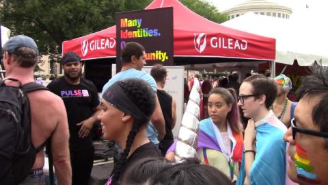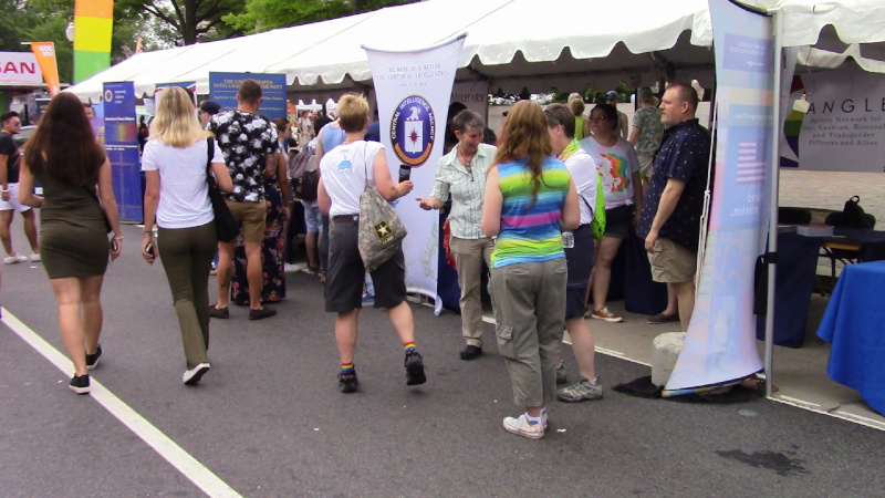 The June 10, 2018 Capital Pride festival offered a mixed bag of traditional GLBTQ themes and corporate booths. Here more than at the parade the Capital Pride board's refusal to meet demands of No Justice No Pride was on display. An MPD contingent was at the very periphery but present, and recruiters for the CIA and similar agencies were present. Especially disappointing in a world of price-gouging on HIV and similar drugs was the presence of a Gilead Sciences booth: this is the company charging $1,000 a pill for a Hepatitis C drug.