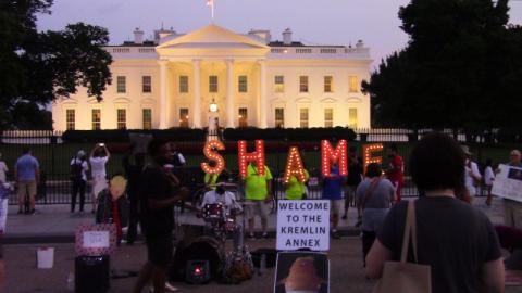 Monday, the 27th of August marked the beginning of the 7th week of nightly protests in front of the White House demanding Trump be impeached for the Russiagate scandal. The "Kremlin Annex" protests began on the evening of July 16 after Trump's joint press conference with Vladimar Putin denying Russian interference in the 2016 election. There are now reports of Trump avoiding the White House while these protests are in session.