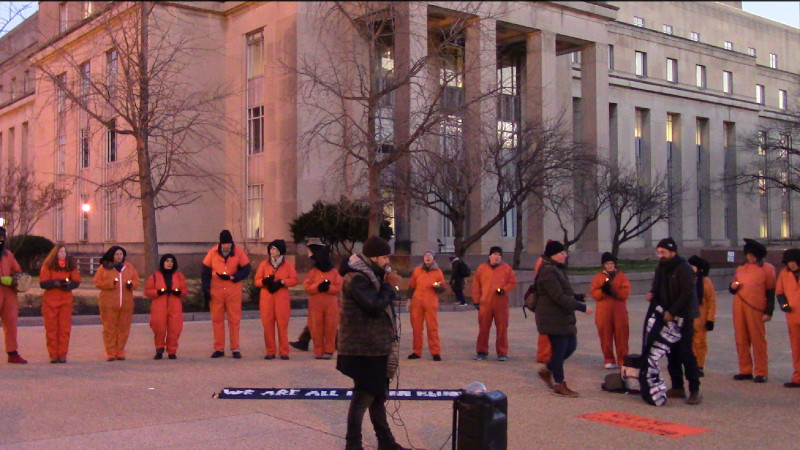 Jan 11 was the 17th anniversary of the opening of AmeriKKKa's dungeoun at Guantanimo Bay, Cuba. On Jan 11, 2019 protesters marked the occasion with a broader protest both of indefinate detention at Gitmo and US mass incarceration in general. Immigration detention was also singled out as protesters marched from the White House to Trump Hotel, and then to DC's own Central Cellblock.