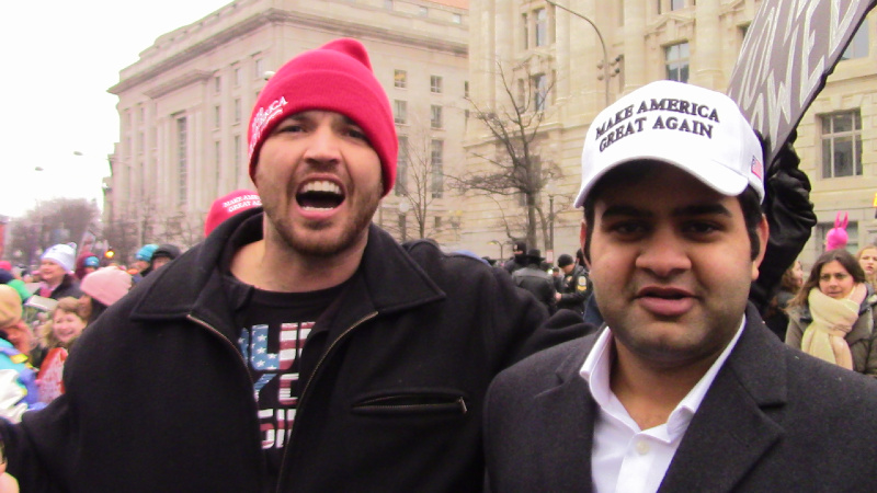 Later in the day, several MAGA-hatted disruptors joined a few antiabortion leftovers from the so-called "march for life" the previous day in heckling the gigantic Women's March. One of them was a confirmed fascist who was present at the Jan 5 Jovi Val event and also counterprotested the counterprotest to the antiabortion march. They quickly left when an antifa activsts started pointing at them chanting "Nazis OUT!" only to reappear at the White House embedded in a MAGA-hatted pro-GOP of maybe a dozen or so. Women's March participants quickly surrounded and isolated that GOP and fascist appearance, making them almost completely ineffective.