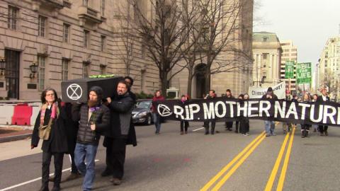 Extinction Rebellion marches casket to Natural History museum, blocks Const Ave
