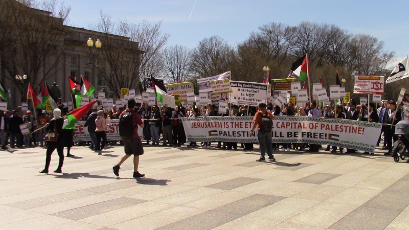 Palestine supporters march on AIPAC, face harassment by Holocaust deniers