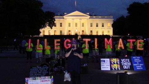 Kremlin Annex Protesters play audio of phone call by Michael Flynn's attorney in front of White House