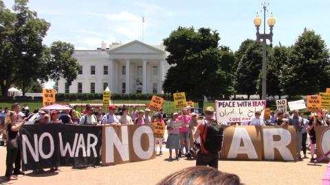Donald Trump's recent round of warmongering against Iran drew antiwar protesters on the 23ed of July, demanding the threats and saber rattling stop all the way. Its not enough that Mr Trump's bone spurs may have stopped one airstrike, the whole mess has to be stopped now. Trump started this by withdrawing from the Iran nuclear deal.
