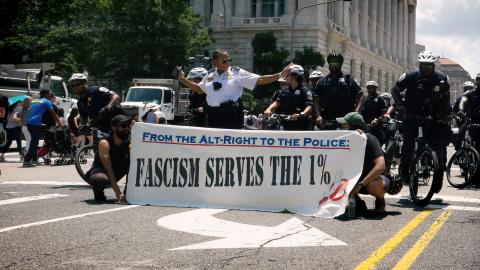 "Hate has no home here" was the message as All Out DC and Black Lives Matter DC, despite massive police presence, barricades, and stifling heat, overwhelmed the the tiny white supremacy rally with freedom, solidarity, and music.