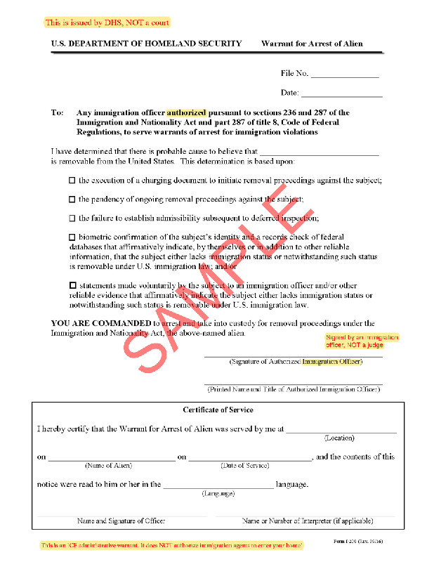 The only warrants that allow anyone to break down your door and enter by physical force look like this sample warrant. It MUST be signed by a judge to be valid.