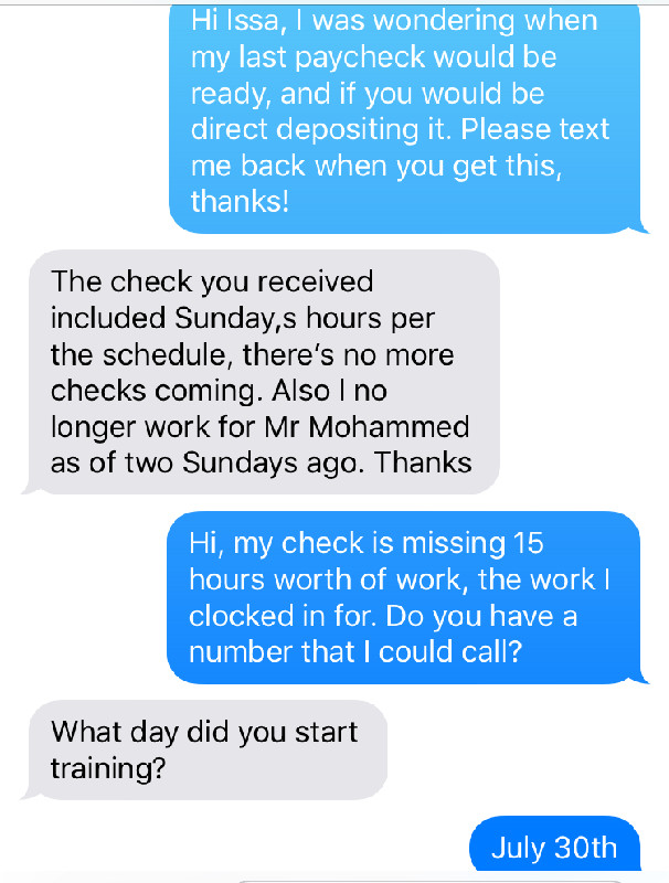 In the case of missing or short last paychecks, this is a common wage theft model: the worker is not going to be working any more hours, so they cannot respond to short pay by walking out because they are already out. The only recourse is to sue in small claims court, to bring in city regulatory agencies, or to bring in union organizers. Shuttin down the entire business may pre-empt unionization, but Mohammad Esfahnani owns other businessses whose employees could be at risk for similar exploitation.