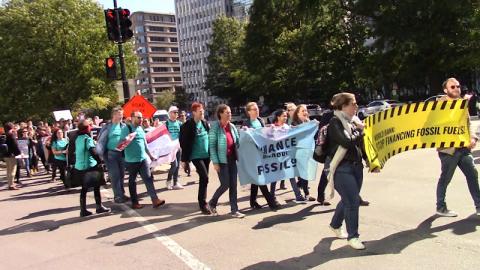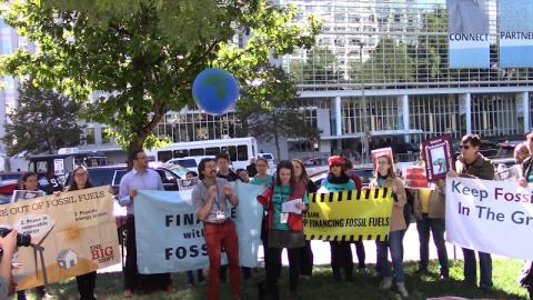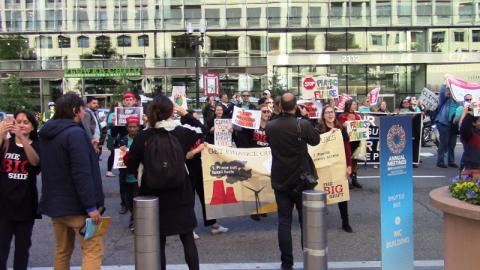 The rally was followed by a march to the IFC, a major funder of fossil fuel projects globally. That in turn was followed by a protest at the IMF"s entry checkpoint, where delegates were returning from what appeared to be a very long lunch.