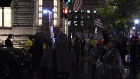 The gauntlet and yellow raincoats of the police were somewhat reminescent of the Deploraball minus the projectiles that marked that notorious alt-right event. The whistles, horns, and drums sounded a lot like the Feb 28, 2017 noise protest against Trump's unofficial State of the Union protest barely over a month later. At one point, protesters mic-checked the section of the US Constitution authorizing impeachment of rogue presidents and other officials. The whistles themselves evoke the whistleblower who started the impeachment proceedings and now is under threat if Trump is succesful in his ugly attempt to dox them in the media.