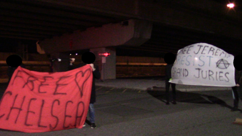 Protesters deploy flares in solidarity with Jeremy Hammond and Chelsea Manning