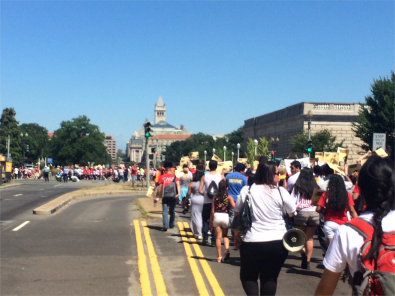 "¡Obama, escucha, estamos en la Lucha!" chanted hundreds of supporters marching from the Immigration and Customs Enforcement (ICE) national headquarters to the White House urging President Obama to take action regarding our broken immigration system and allow every undocumented immigrant living in the U.S. to be allowed to stay without fear of deportation. The rally, organized by CASA de Maryland, was the largest act of civil disobedience- with hundreds of arrestees- in the history of the immigrant rights movement.