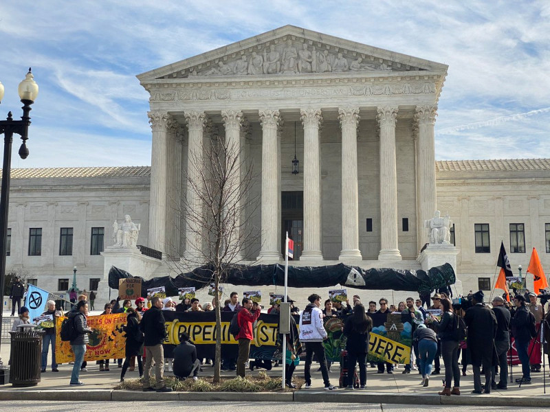 On the 24th of Feb, the US Supreme Court heard oral arguments in the appeal of a lower court ruling forbidding the (fracked gas) Atlantic Coast Pipeline from crossing under the Appalacian Trail. Outside protesters demanded the Court reject the pipeline and ignore the whining from fossil fuel industry attorneys.