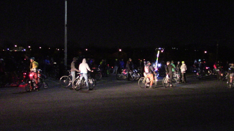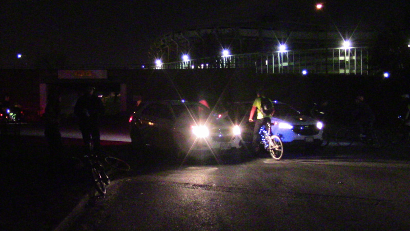 The original halfway stop for the ride was at RFK Stadium, but two police cars sat at the periphery and shined lights into the stopped ride. Seeing the spot was hostile, riders moved on to a backup location and the rest stop went without incident there. Finally the ride returned to the streets, ending at a Barracks Row location.