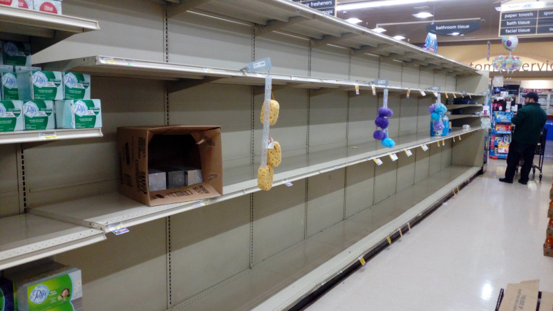 On the way home after the bike party, the author of this story encountered more fallout from the World Health Organization's declaration that the Covid-19 coronavirus is now a global pandemic. Radio news was reporting (and possibly CAUSING) runs on toilet paper and hand sanitizer in grocery stores. Indeed those shelves were empty as shoppers pushed mountainous loads in their carts, even after midnight. There was no toilet paper whatsoever to be seen, possibly due to radio newscasters going on the air and telling people that a toilet paper crisis was coming while it was still available. This is not the first time toilet paper has been stripped from store shelves due to rumors and hysteria and probably won't be the last. The first "toilet paper crisis" was at least as far back as the 1970's and even spawned "the toilet paper crisis is a load of crap" bumper stickers.