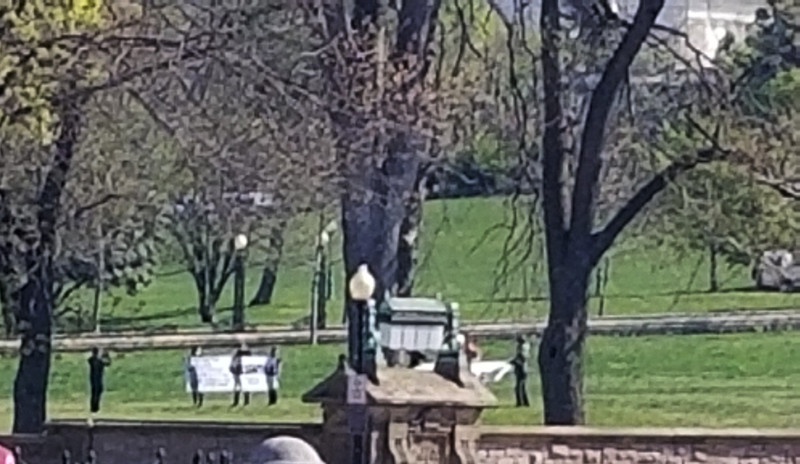 Masked activists displayed banners in the US Capitol lawn with these demands, defying "stay at home" orders which in many places (notably Hong Kong) are used to suppress political dissent as well as the coronavirus. If anything is essential, it's standing up and fighting back against corporate bullies and their bought and paid for "representatives" on Capitol Hill and elsewhere in government. The 8th of April was the second day in a row protesters deployed publicly in DC in the face of the current all-out police state.
