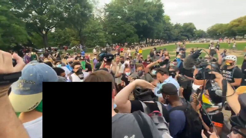 Jack Posobiec removed, escorted out of protest to remove condescending Lincoln Park statue