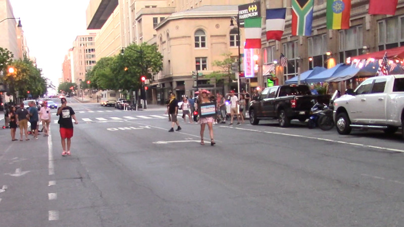 As in prior incidents in that area, the fascists were based out of Harry's Bar, an "Americana" bar attached to the Hotel Harrington. This establishment has a long history of harboring Trump, fascist, and Nazi events. This time around they may also be harboring COVID-19, as neither masks nor any form of social distancing were visible among the packed crowd of pro-Trump July 4 partiers the fascists were embedded in. A baying mob screaming Posobiec/Cernovich talking points poured out of that sidewalk when a single antifa journalist rode by on a bicycle. Just one of those maskless screamers with COVID-19 could infect all the others. Perhaps Harry's Bar should be renamed "Club Covid" in the interests of full disclosure.