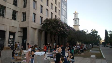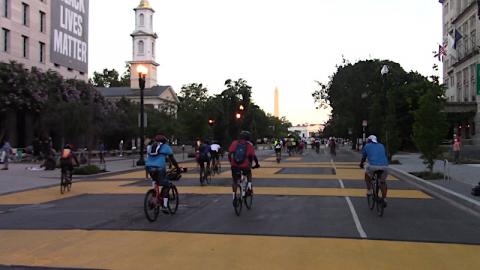On the 29th of July, Black Lives Matter activists held a "protest and paint" sign painting on BLM Plaza to prepare for Saturday's big push. Back on July 16, cops harassed a similar sign painting session, this time MPD had the good sense to stay away. About an hour and a half into this, activists on bikes rode through the Plaza as part of an evening ride.
