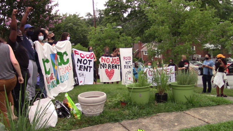 On the last day of July, landlord Bob Miley showed up in Chillum, MD with the intent of illegally evicting tenants of a house he "owns." He saw from the end of the block that the area was packed with protesters and beat a hasty retreat. With no court order he could not get police help for his failed attempt to change the locks.