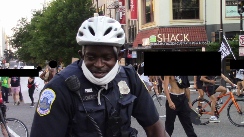 As usual, many cops including a senior "white-shirt" defied regulations imposed on MPD requiring them to wear masks while interacting with the public. Bowser's mask law does exempt them but this regulation does NOT.