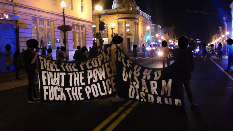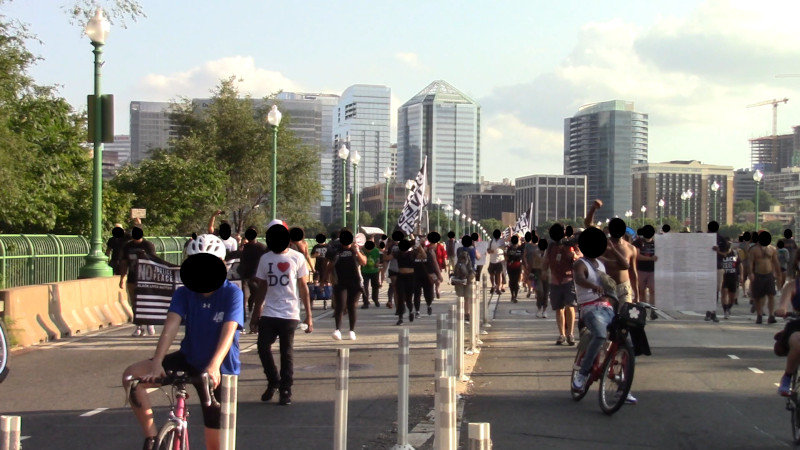 The 8th of August featured a new set of targets by Black Lives Matter protesters. The daytime march from Malcolm X Park took over Key Bridge before marching into Georgetown, and the night-time "Fuck the Police" march from Dupont Circle included a noisy, late-night "WAKE UP!" march through some of the richest residential neighborhoods in Georgetown.
