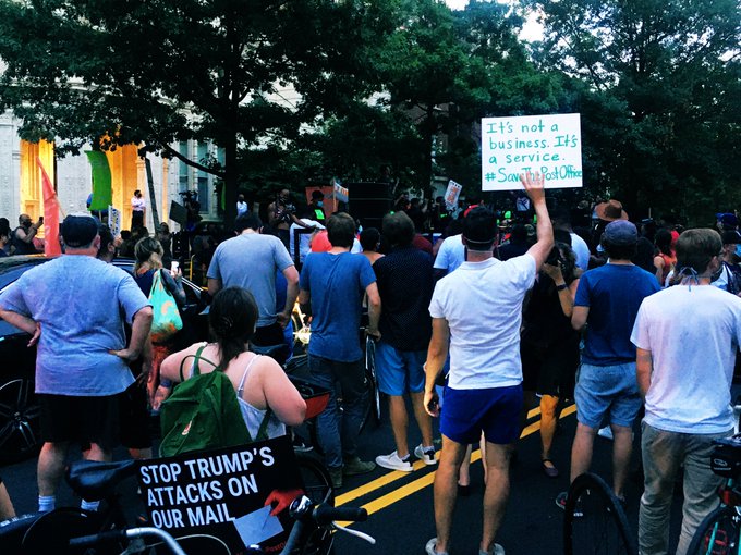 On the 23ed of August, protesters returned to the home of Trump's mail-sabotaging Postmaster-General Louis Dejoy. Dejoy has been slowing down mail service as part of Trump's scheme to steal the 2020 election by ensuring mailed ballots are not counted while telling less COVID-concerned GOP voter to vote in person.