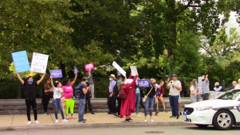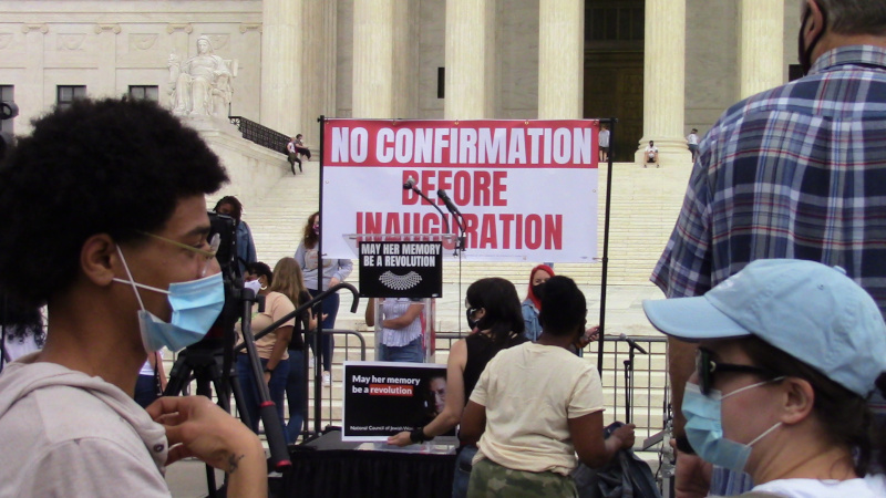 On the 27th of September, a "No Confirmation without Inauguration" rally was held in front of the Supreme Court steps. Speakers warned this would be "a fight." A fight indeed: Fundamentalist Christians and outright white nationalists showed up to counterprotest and harass, using their bullhorns in siren mode plus their chants in a failed attempt to drown out the sound system.