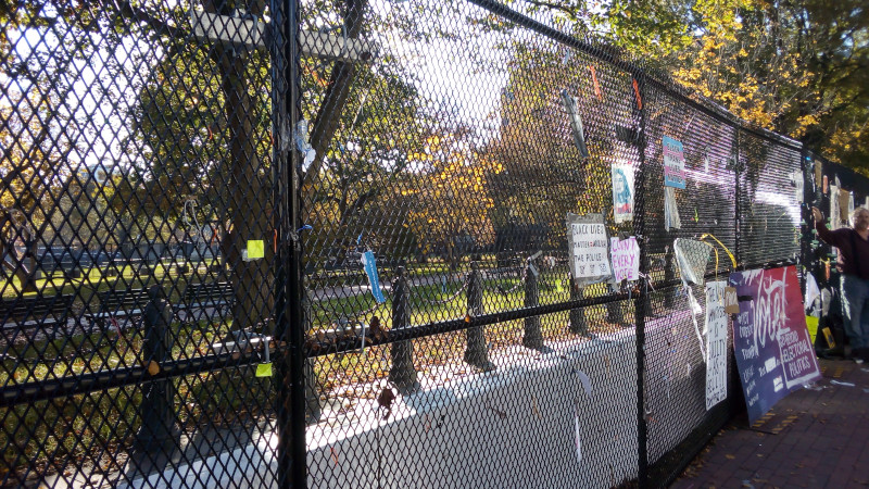 On the 13th of November, supporters of defeated lame-duck "President" Trump descended on Black Lives Matter Plaza. They tore signs off two sections of fence and harassed Refuse Fascism, Extinction Rebellion and migrant rights protesters.