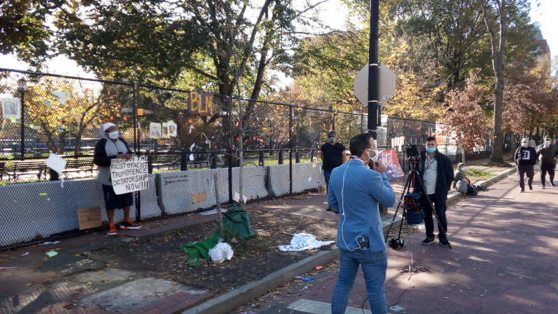 Trumpers again stripped sections of fence at Black Lives Matter Plaza of signs, and even pulled a Black Lives Matter sign off a nearby building