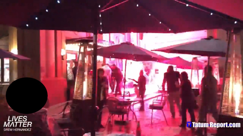Serious Proud boys violence began as soon as the main confrontation at the Supreme Court had broken up, people they called "Dems" on their videos were surrounded at beaten. Towards evening, anti-Fascists managed to catch some of the Trumpers dining in restaurants, and on at least two occasions lobbed in lout but harmless fireworks. At the restaurant at 16th and K, this caused the restaurant to close. On BLM Plaza, though it was hours after the destruction of the signs on the White House fence, ant-Fascists managed to get the upper hand. They burned Trump flags and MAGA hats when possible and pursued far-right extremists caught in small groups back to their hotels. Some of those hotels contained the Proud Boys, and the biggest pack of them was at Harry's Bar. From there they attempted to march on Black Lives Matter Plaza. This march was either stopped or delayed for many hours, at the price of anti-Fascists being beaten and in at least once case stabbed by Proud Boys terrorists. The far-right claims that most Trump flags carried through BLM Plaza were captured and burned, but had this been the case the smoke would have carried all the way to K st due to the number of these flags. It is reported that an unkown right-wing crew got to BLM Plaza at around midnight with a large pro-police flag, but go-time for the original Proud Boys march had been 7PM.