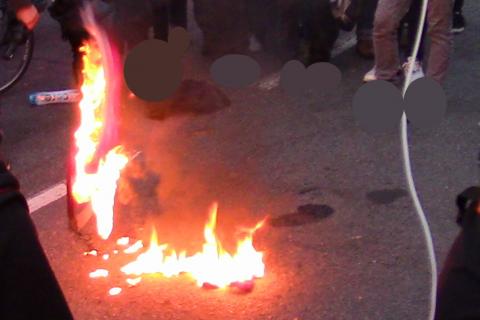 Trump flag burning as anti-Fascists scored a victory over the knife and gun-wielding Magat mob. Proud Boys coudn't be everywhere at once!