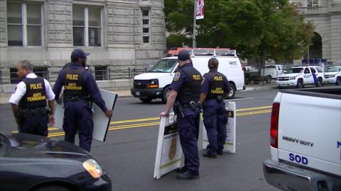Perhaps the bag searches were because the EPA had previously identified the main contaminent in this well water as uranium? They said the water was "safe to drink" yet told a neighbor not to even use it to bathe their children. I guess the idea of uranium entering the EPA's headquarters even as part of a sample of contaminated drinking water is enough to draw a full-on "terrorism" scare, given the blunt "anti-terrorism" labels on the body armor worn by the DHS cops. Why is it OK for water to come out of someone's well that is considered a terrorist emergency if even one drop gets on the Metro, much less inside a Federal building? Why are the gas frackers not called terrorists for putting uranium in well water that may be consumed by children?