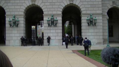 On the 10th of October, anti-fracking activists and a resident of Dimock county in Pennsylvania challenged EPA officials to drink from either of two samples of discolored, contaminated well water from a fracking-damaged well. The response they got was the expected and understood refusal to drink the water, and an acceptance by an EPA official of their petitions. Meanwhile, the EPA building behind them was guarded by a counted 20+ cops-and bag searches at the Metro station entrance there. As soon as the protest ended, the DHS bag search checkpoint was withdrawn from the Metro station.