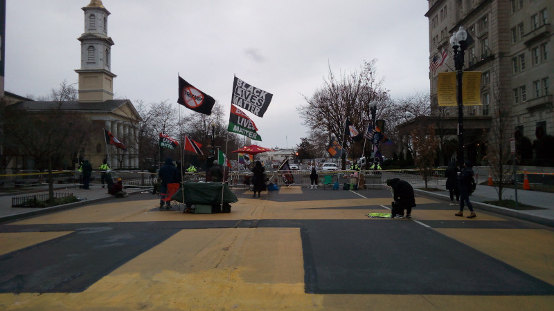 On January 5, Trump supporters rallied on Freedom Plaza. At one point, a speaker told people to hug each other, thinking it was sarcastic to call it a "superspreader event." Another speaker made an incredibly offensive comparison to Normany (D-Day) while fascists and Proud Boys harassed the defenders of Black Lives Matter Plaza. Meanwhile two more fascists were arrested for carrying guns.