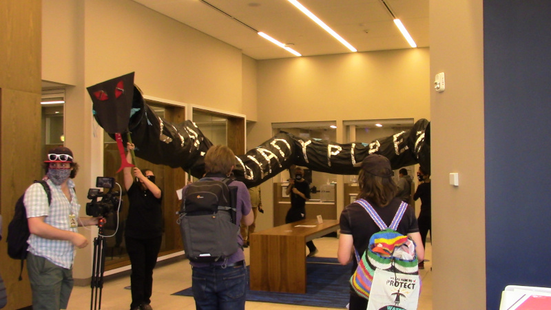XRDC protests inside, then dumps "oil" at Chase Bank over Enbridge Line 3 financing