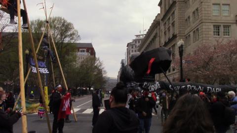 On the first of April, Lakota, Anishabe, and other Indigenous activsts from the frontlines of such pipeline fights as DAPL, Enbridge Line 3, and many others gathered at the US Army Corps of Engineer. From there they marched a 300 foot long rendition of the Black Snake of prophecy to the White House, where two tripod sitters waited. On arrival, the "Black Snake Killaz" went to work.