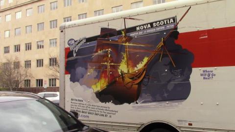 Even the U-Haul truck that delivered the props had a burning settler ship painted on it(one of the standard images)