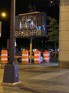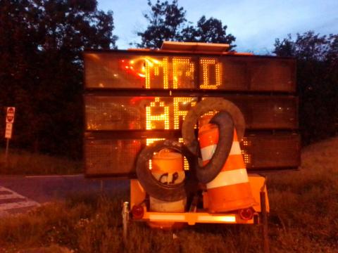 As Mayday protests wound down, at least two DC electronic street signs showed hacked messages. One read "MPD are pigs" and the other known modified sign read "Fuck Jason Bagshaw." Bagshaw is famous for among other things commanding police assaults on protesters at 4D after Karon Hylton was chased into traffic and killed by a cop near Ga Ave.